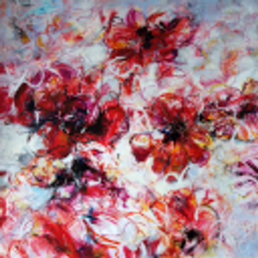 My recent goal has been to create paintings where there is only a hint of flowers, pushing abstraction to the limit but using my imagination…![When it's springtime 1]()