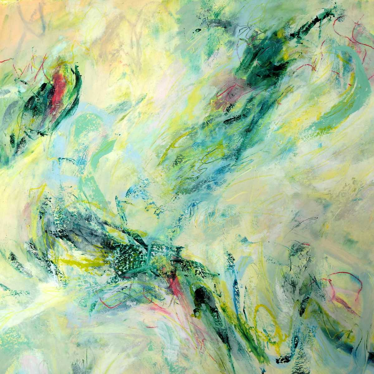 I have long been fascinated with purely abstract art and have experimented with a range of shapes; geometric and organic but mostly with a lot of tonal contrast. In this set of work I am working with a limited palette focussed on greens in particular lime green. I am trying to keep the colours in a high key; fresh, bright and invigorating but calming.