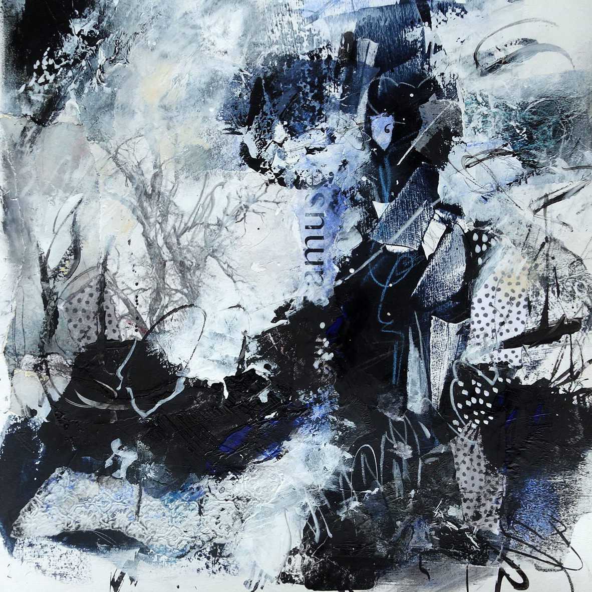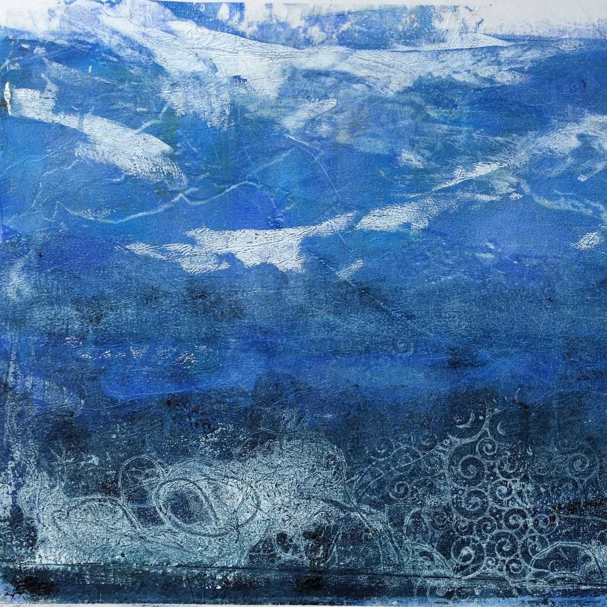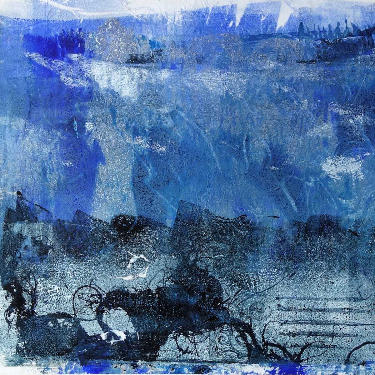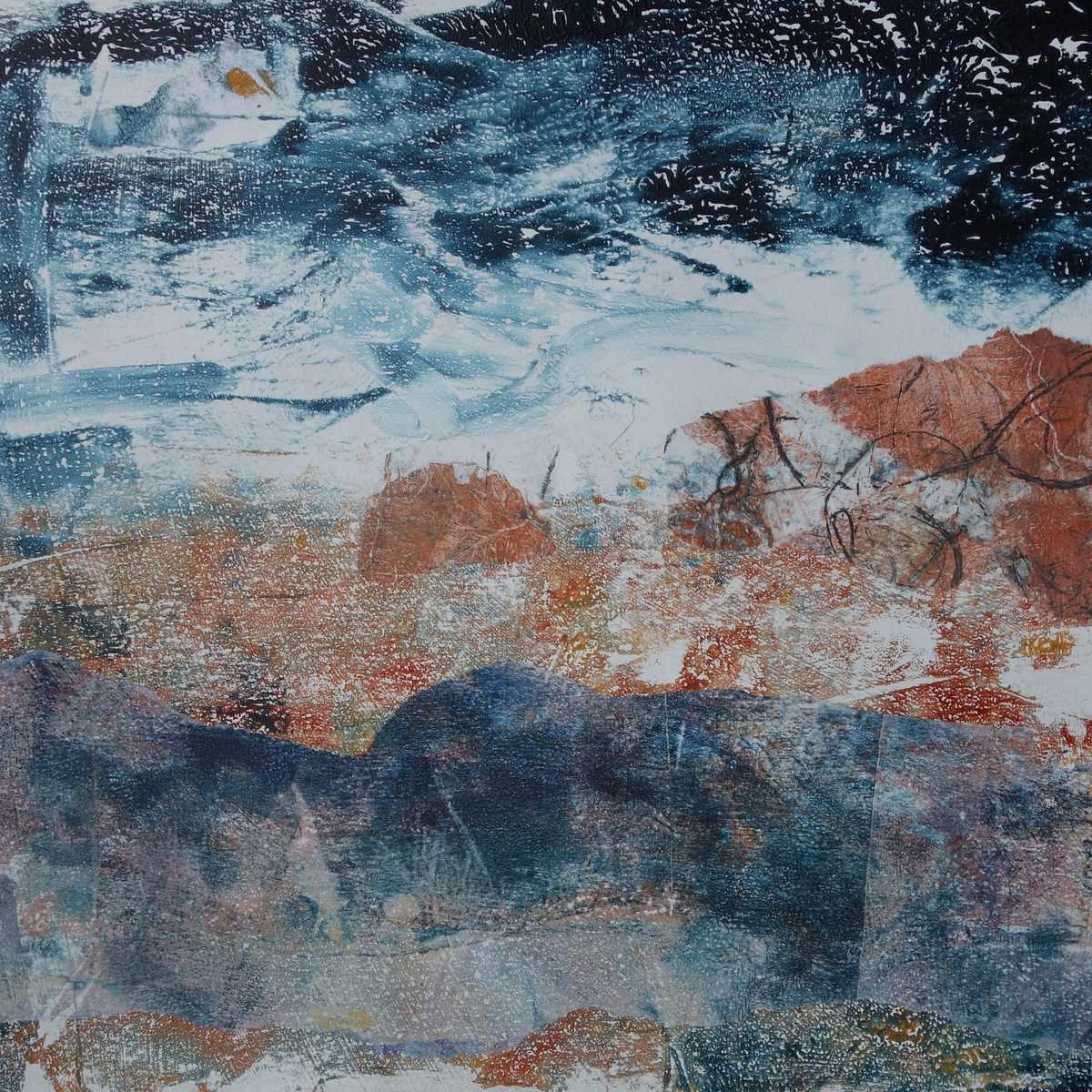 Mono prints and collage feature in some of my work. I have a few pieces that are mainly print and/or collage. I like to transfer monoprints and also use a gel plate to create collage papers on fine tissue. These are integrated into the painting to create complexity and exciting textures.